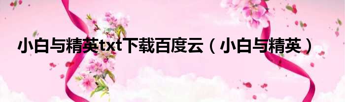 导读 大家好,今天小六子来为大家解答以下的问题,关于小白与精英txt下载百度云,小白与精英这个很多人还不知道,现在让我们一起来看看吧!1、顾