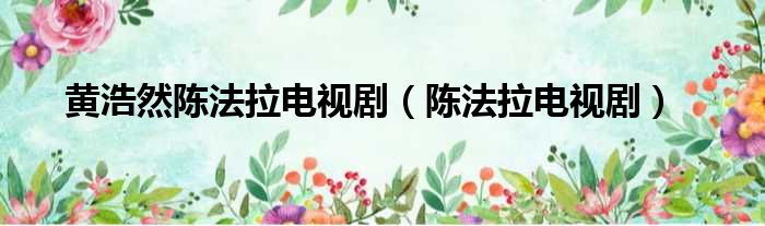 黄浩然陈法拉电视剧(陈法拉电视剧)