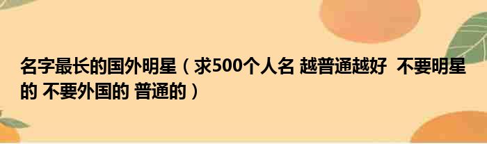 导读 大家好,今天小六子来为大家解答以下的问题,关于名字最长的国外明星,求500个人名 越普通越好 不要明星的 不要外国的 普通的这个很多