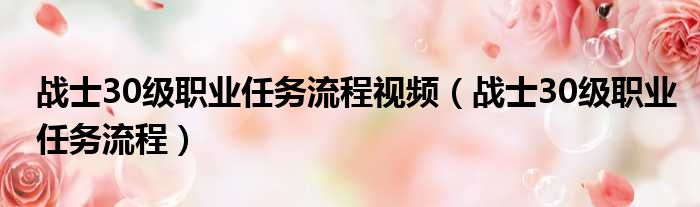 战士30级职业任务流程视频(战士30级职业任务流程)