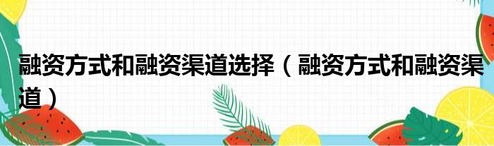 融资方式和融资渠道选择(融资方式和融资渠道)