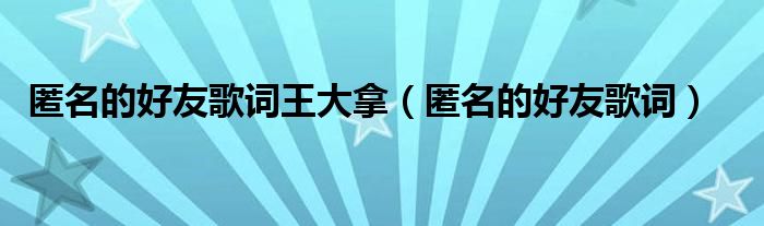 匿名的好友歌词王大拿(匿名的好友歌词)