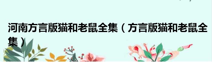 河南方言版猫和老鼠全集(方言版猫和老鼠全集)