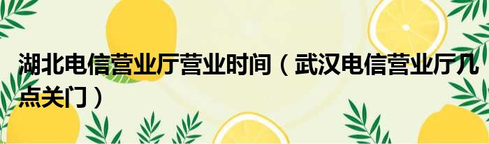 导读 大家好,今天小六子来为大家解答以下的问题,关于湖北电信营业厅营业时间,武汉电信营业厅几点关门这个很多人还不知道,现在让我们一起来看