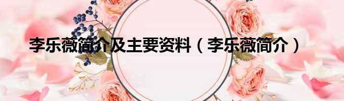导读 大家好,今天小六子来为大家解答以下的问题,关于李乐薇简介及主要资料,李乐薇简介这个很多人还不知道,现在让我们一起来看看吧!1、读le