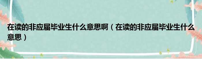 在读的非应届毕业生什么意思啊(在读的非应届毕业生什么意思)