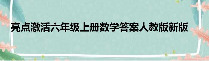 导读 大家好,今天小六子来为大家解答以下的问题,关于亮点激活六年级上册数学答案人教版新版这个很多人还不知道,现在让我们一起来看看吧!1、和
