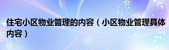 住宅小区物业管理的内容(小区物业管理具体内容)