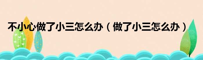 导读 大家好,今天小六子来为大家解答以下的问题,关于不小心做了小三怎么办,做了小三怎么办这个很多人还不知道,现在让我们一起来看看吧!1、要