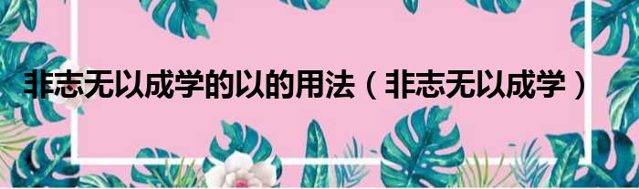 导读 大家好,今天小六子来为大家解答以下的问题,关于非志无以成学的以的用法,非志无以成学这个很多人还不知道,现在让我们一起来看看吧!1、意