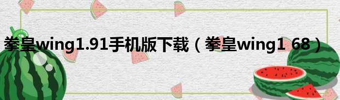 拳皇wing1.91手机版下载(拳皇wing1 68)