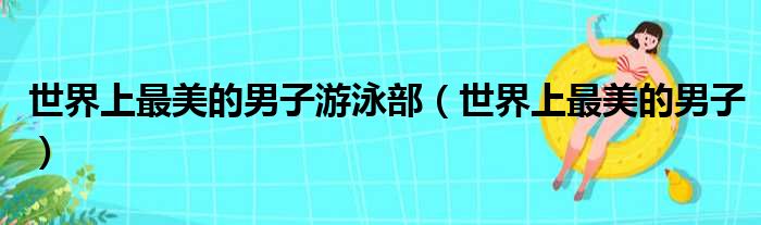 导读 大家好,今天小六子来为大家解答以下的问题,关于世界上最美的男子游泳部,世界上最美的男子这个很多人还不知道,现在让我们一起来看看吧!1