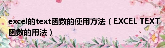 excel的text函数的使用方法(EXCEL TEXT函数的用法)