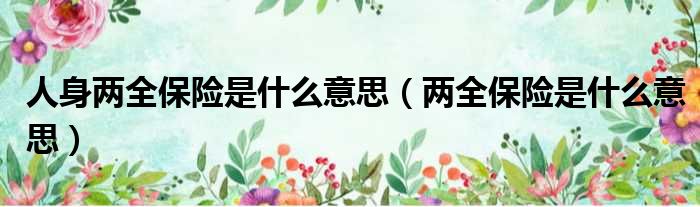 导读 大家好,今天小六子来为大家解答以下的问题,关于人身两全保险是什么意思,两全保险是什么意思这个很多人还不知道,现在让我们一起来看看吧