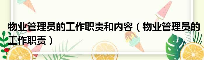 物业管理员的工作职责和内容(物业管理员的工作职责)