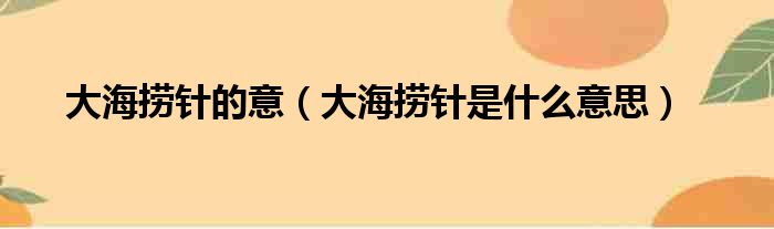 导读 大家好,今天小六子来为大家解答以下的问题,关于大海捞针的意,大海捞针是什么意思这个很多人还不知道,现在让我们一起来看看吧!1、大海捞