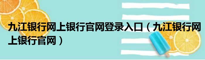 九江银行网上银行官网登录入口(九江银行网上银行官网)