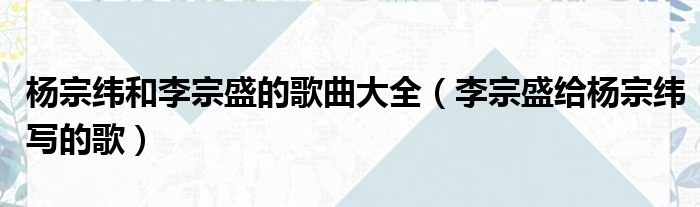杨宗纬和李宗盛的歌曲大全(李宗盛给杨宗纬写的歌)