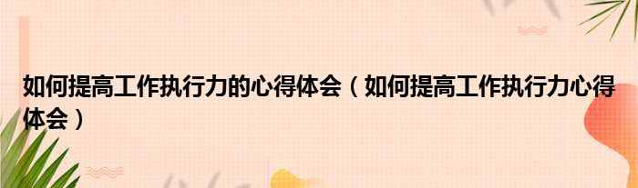 如何提高工作执行力的心得体会(如何提高工作执行力心得体会)
