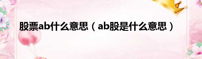 大家好,今天小六子来为大家解答以下的问题,关于股票ab什么意思,ab股是什么意思这个很多人还不知道,现在让我们一起来看看吧!