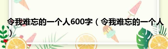 导读 大家好,今天小六子来为大家解答以下的问题,关于令我难忘的一个人600字,令我难忘的一个人这个很多人还不知道,现在让我们一起来看看吧!1