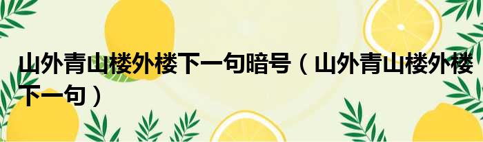山外青山楼外楼下一句暗号(山外青山楼外楼下一句)