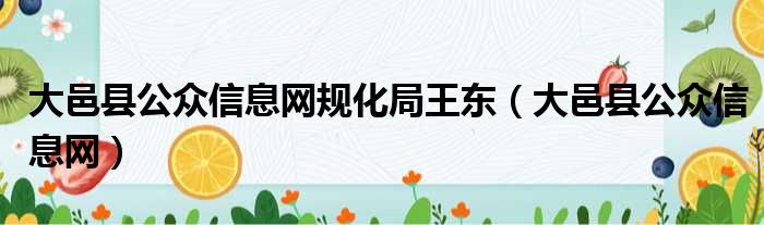 大邑县公众信息网规化局王东(大邑县公众信息网)