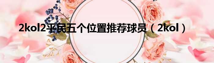 2kol2平民五个位置推荐球员(2kol)