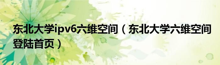 导读 大家好,今天小六子来为大家解答以下的问题,关于东北大学ipv6六维空间,东北大学六维空间登陆首页这个很多人还不知道,现在让我们一起来看