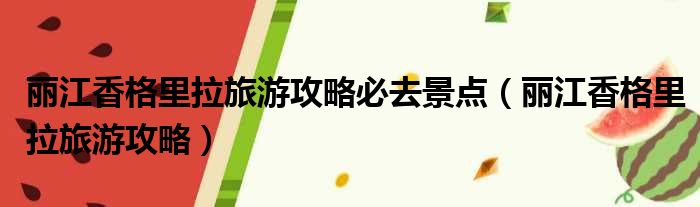 丽江香格里拉旅游攻略必去景点(丽江香格里拉旅游攻略)