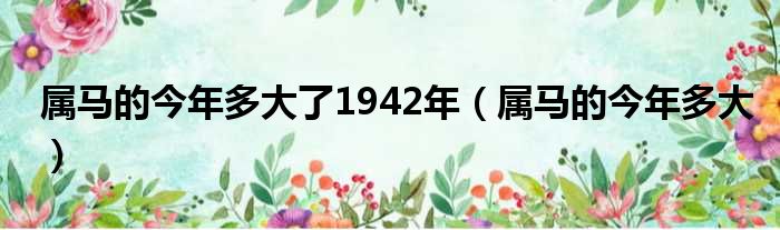大家好,今天小六子来为大家解答以下的问题,关于属马的今年多大了1942年,属马的今年多大这个很多人还不知道,现在让我们一起来看看吧!