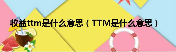 导读 大家好,今天小六子来为大家解答以下的问题,关于收益ttm是什么意思,TTM是什么意思这个很多人还不知道,现在让我们一起来看看吧!1、TTM: