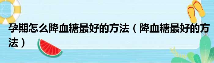 孕期怎么降血糖最好的方法(降血糖最好的方法)