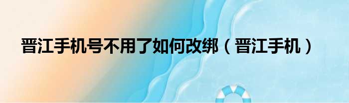 大家好,今天小六子来为大家解答以下的问题,关于晋江手机号不用了如何改绑,晋江手机这个很多人还不知道,现在让我们一起来看看吧!