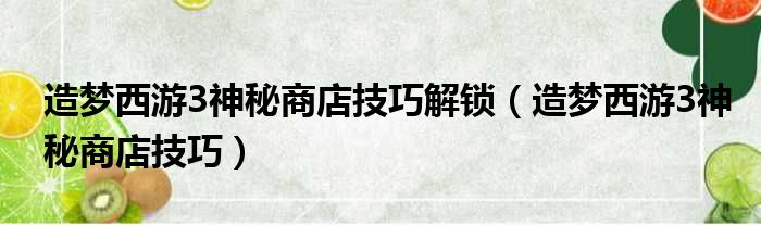 导读 大家好,今天小六子来为大家解答以下的问题,关于造梦西游3神秘商店技巧解锁,造梦西游3神秘商店技巧这个很多人还不知道,现在让我们一起来