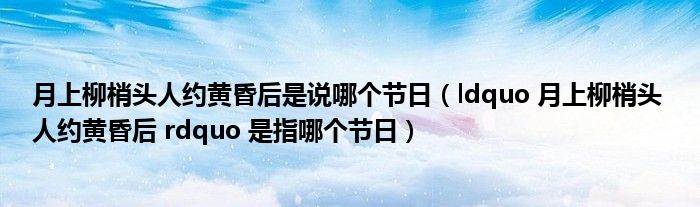 月上柳梢头人约黄昏后是说哪个节日(ldquo 月上柳梢头 人约黄昏后 rdquo 是指哪个节日)