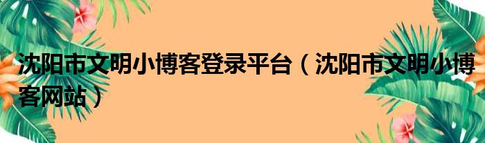 沈阳市文明小博客登录平台(沈阳市文明小博客网站)