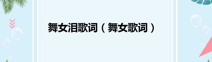 舞女泪歌词(舞女歌词)