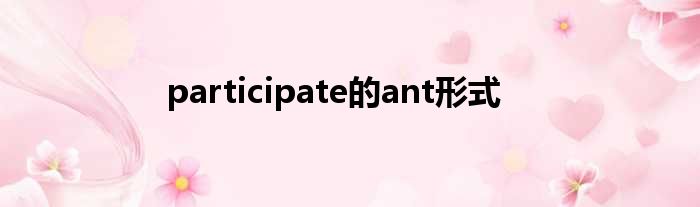 大家好,今天小六子来为大家解答以下的问题,关于participate的ant形式这个很多人还不知道,现在让我们一起来看看吧!