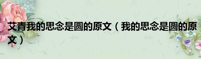 艾青我的思念是圆的原文(我的思念是圆的原文)