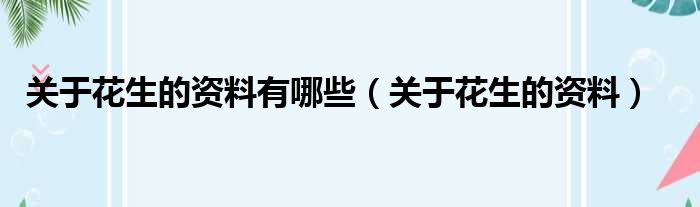 大家好,今天小六子来为大家解答以下的问题,关于关于花生的资料有哪些,关于花生的资料这个很多人还不知道,现在让我们一起来看看吧!