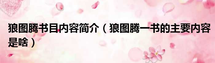 狼图腾书目内容简介(狼图腾一书的主要内容是啥)