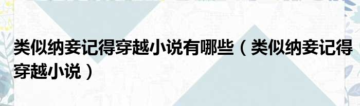 类似纳妾记得穿越小说有哪些(类似纳妾记得穿越小说)