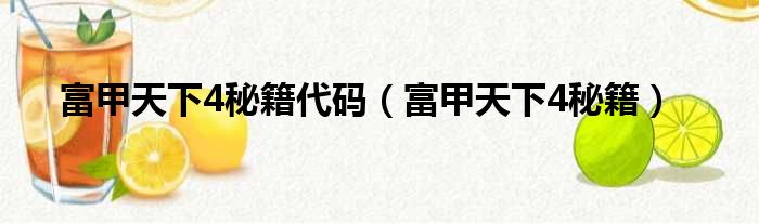 富甲天下4秘籍代码(富甲天下4秘籍)