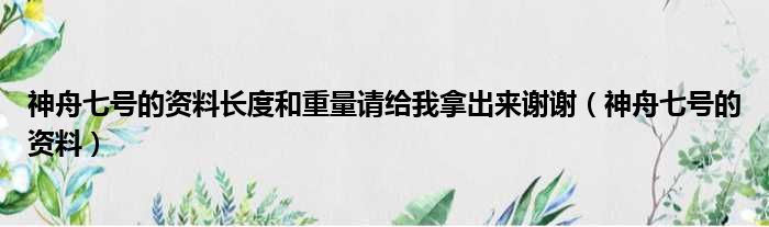 神舟七号的资料长度和重量请给我拿出来谢谢(神舟七号的资料)