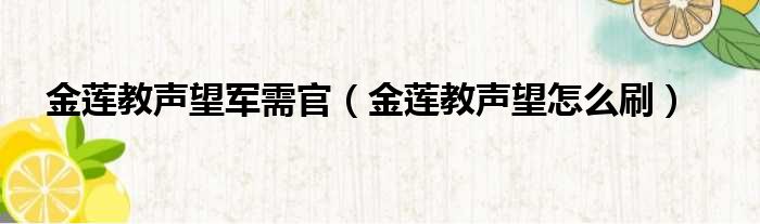 大家好,今天小六子来为大家解答以下的问题,关于金莲教声望军需官,金莲教声望怎么刷这个很多人还不知道,现在让我们一起来看看吧!
