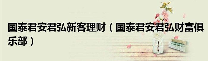 导读 大家好,今天小六子来为大家解答以下的问题,关于国泰君安君弘新客理财,国泰君安君弘财富俱乐部这个很多人还不知道,现在让我们一起来看看