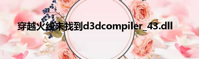 导读 大家好,今天小六子来为大家解答以下的问题,关于穿越火线未找到d3dcompiler_43 dll这个很多人还不知道,现在让我们一起来看看吧!1、反外挂