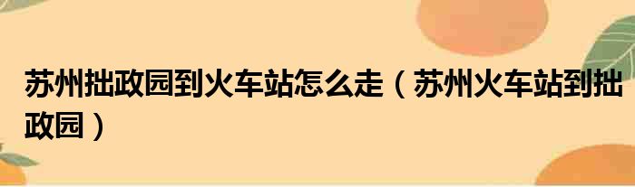 苏州拙政园到火车站怎么走(苏州火车站到拙政园)