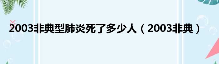 大家好,今天小六子来为大家解答以下的问题,关于2003非典型肺炎死了多少人,2003非典这个很多人还不知道,现在让我们一起来看看吧!